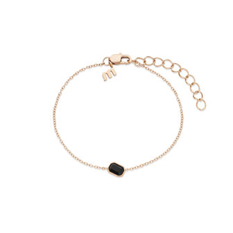 The Melano Friends Mini Pillow bracelet is shown in a rose gold coloured plating with a Swarovski stone in the colour Jet Black. This fine bracelet is adjustable in the known sizes S/M/L and the bracelet has a total length of 20 cm. The stone itself has an extra detail: there’s a star engraved on the backside. In addition, the Friends bracelet has a Melano M-tag to finish off the look.