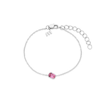 De Melano Friends Mini Pillow armband wordt getoond in een zilverkleurige plating met een Swarovski steentje in de kleur Rose. Deze verfijnde armband is te verstellen in de bekende maten S/M/L en in totaal heeft de armband een lengte van 20 cm. Het steentje zelf heeft een extra detail: op de achterkant bevindt zich namelijk een ster gravering. De Friends armband is daarnaast ook afgewerkt met een Melano M-tag.
