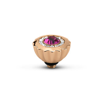 Melano Twisted Ribbed CZ Steentje Rose Goudkleurig Fuchsia