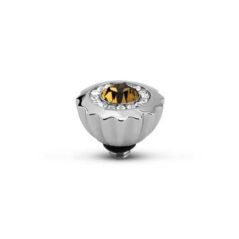 The Melano Twisted Ribbed CZ Stone has a ribbed exterior with a facet cut CZ stone in the middle, available in several colors and small CZ stones are inlaid all around. A Must Have for the Melano enthusiast. This stone has a width of 10mm.